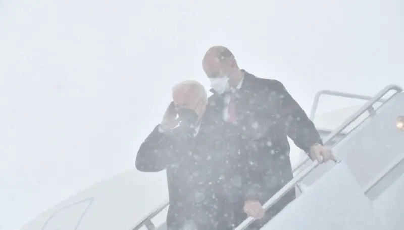 Президент США Джо Байден, который сегодня прилетел в Вашингтон, полчаса не мог покинуть самолет после посадки из-за сильнейшего снегопада, сообщает Independent.