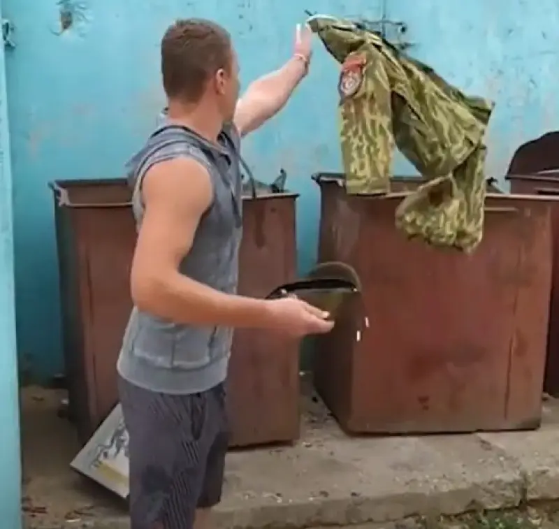 "Братства спецназу в Білорусі більше немає", - наприклад, стверджує один з чоловіків на відео, після чого рішуче викидає чорний берет в контейнер для сміття.