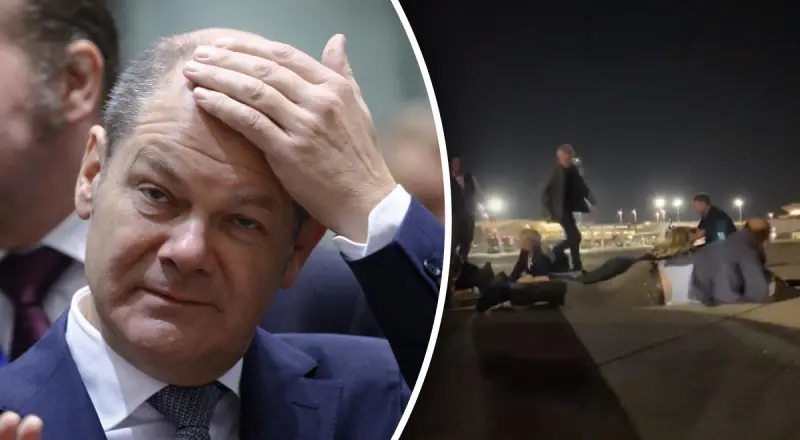 Смотрите видео, как Шольцу пришлось лежать на взлетной полосе в Израиле во время атаки ХАМАСа: