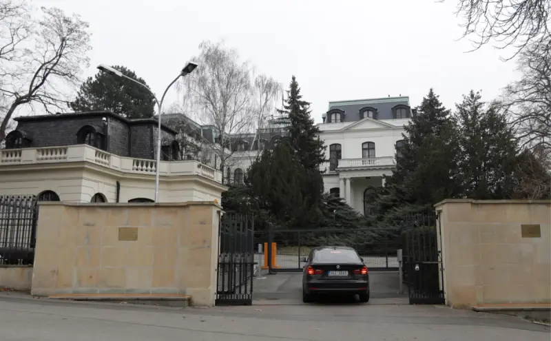 Российское посольство в Праге облили кетчупом в ночь на 18 апреля из-за подозрения в причастности спецслужб РФ к взрыву в Врбетице в 2004 году / Petr David Josek / AP