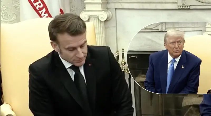 В то же время вице-президент США Джей Ди Вэнс сидит в небрежной, расслабленной позе, которая контрастирует с положением Макрона.