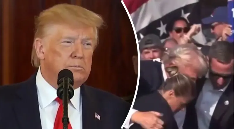 Во время митинга экс-президента США Дональда Трампа в Пенсильвании произошла стрельба. После того, как раздались выстрелы, политик упал. Когда к нему подбежали охранники и вывели его со сцены, на его правом ухе была заметна кровь. Когда Трампа вели со сцены, он поднял кулак и кричал в ответ толпе. Затем его посадили в автомобиль и эвакуировали с места происшествия.
