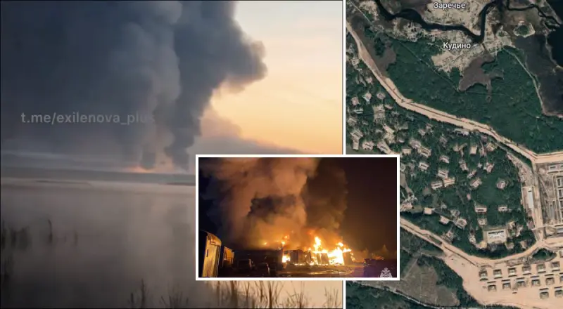 В РФ не признали атаку на войсковую часть, заявив лишь, что пожар возник после падения обломков сбитого БПЛА.