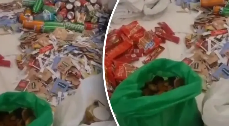 Россиянка, голос которой можно услышать за кадром, пытается оправдаться, мол, это просто "еда в дорогу, чтобы есть ее в поезде". Но она не объяснила, как собиралась со своей семьей съесть 35 кг еды во время дороги домой.