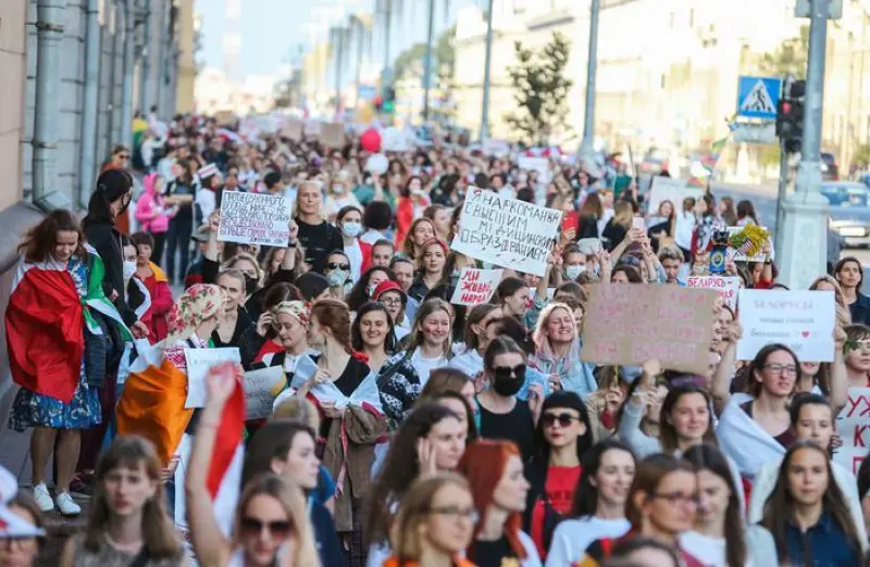 На 28-й день масових антиурядових акцій в Білорусі проходить марш жінок, повідомляє білоруський ресурс Tut.by.