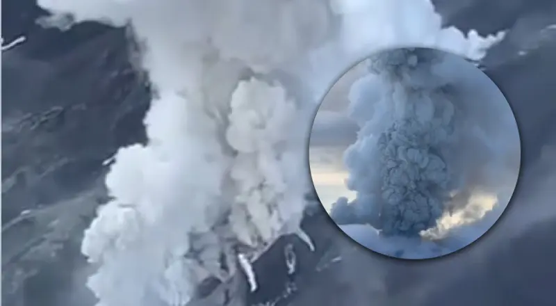 Извержение вулкана связывают с сильным землетрясением магнитудой 8,8 балла, которое произошло на Камчатке 30 июля.