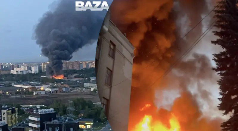Как сообщает Москва 24, недалеко от столицы страны-агрессора РФ вспыхнул цех бывшего мебельного комбината на улице Некрасова. Также огонь охватил склад с краской.